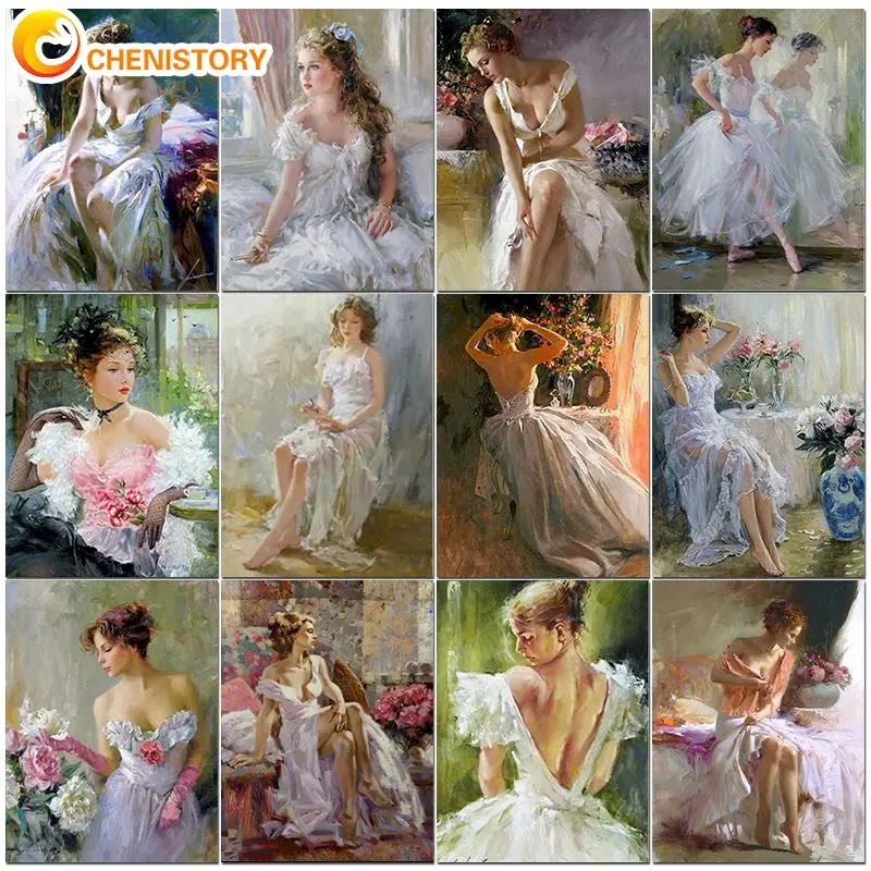 RUOPOTY картина маслом по номерам с рамкой, маленькая девочка в тра...