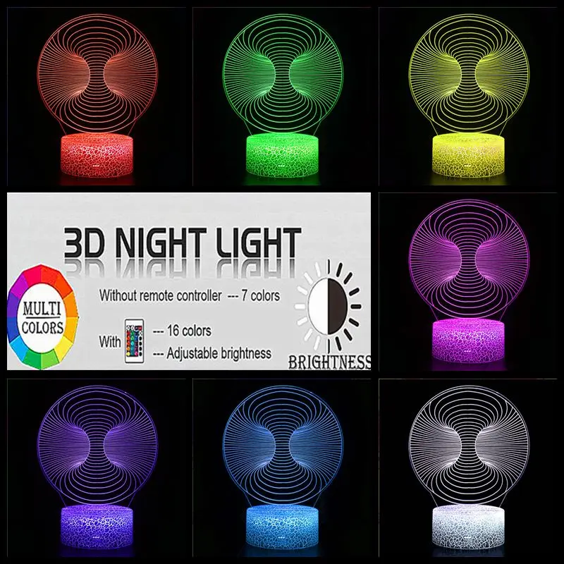 3D абстрактный круг, спиральная лампа, светодиодсветильник лампа, голограмма, иллюзии, 7 цветов, меняющая цвет, декоративная лампа, лучший светильник, подарок для украшения дома