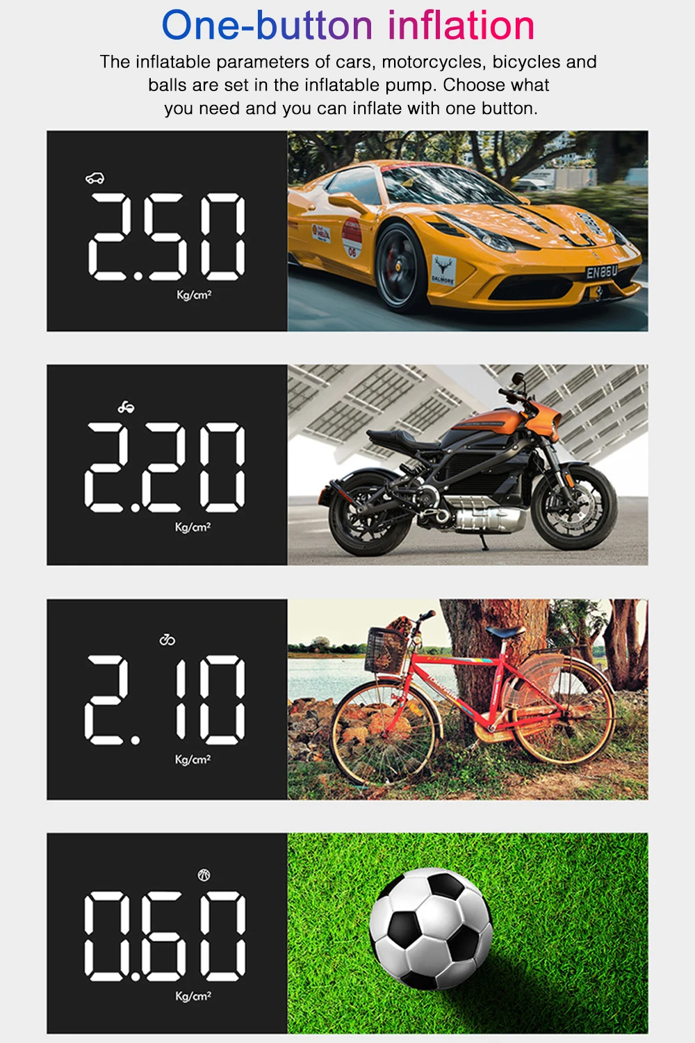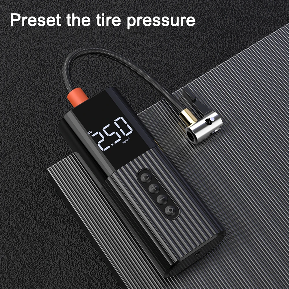 Портативный насос для шин, мини воздушный компрессор, автомобильный надувной насос, воздушный насос для шин со стальной проволокой и светодиодным освещением, 12 В, 150psi, мини-компрессор