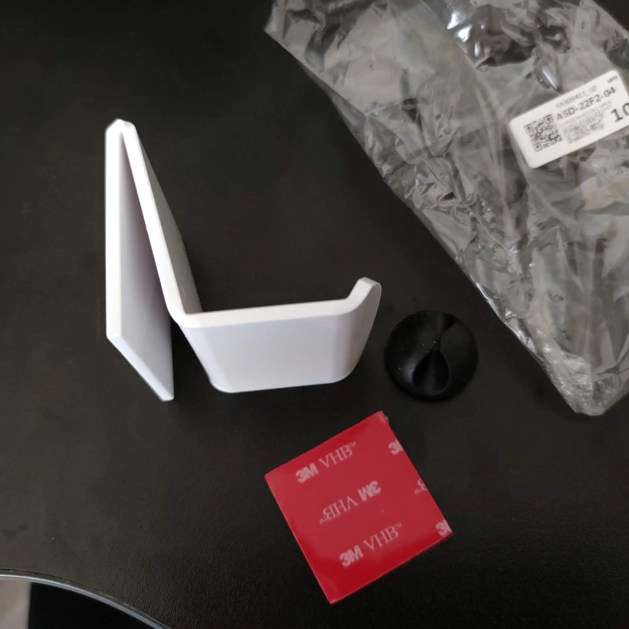 Обычный кусок пластика. Для своих целей подходит. В комплекте двусторонний скотч для приклейки к поверхности и держатель для провода. Для своих целей подойдет, еще не клеил, так как жду новый стол. Как это все выглядит, наглядно на фото.