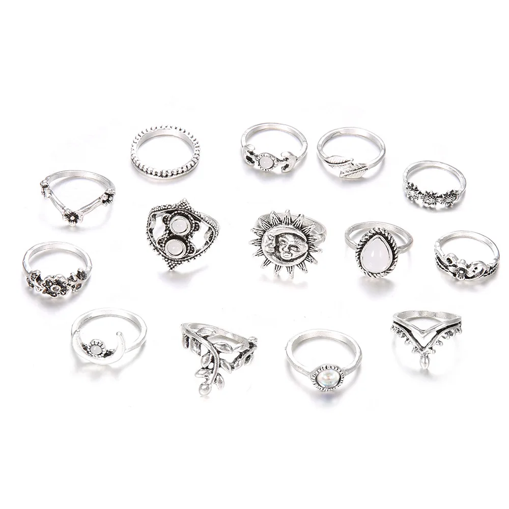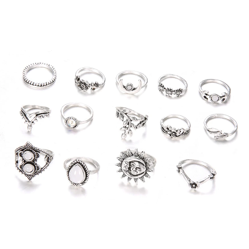 14 шт.компл. богемные винтажные резные кольца в виде подсолнуха наб...