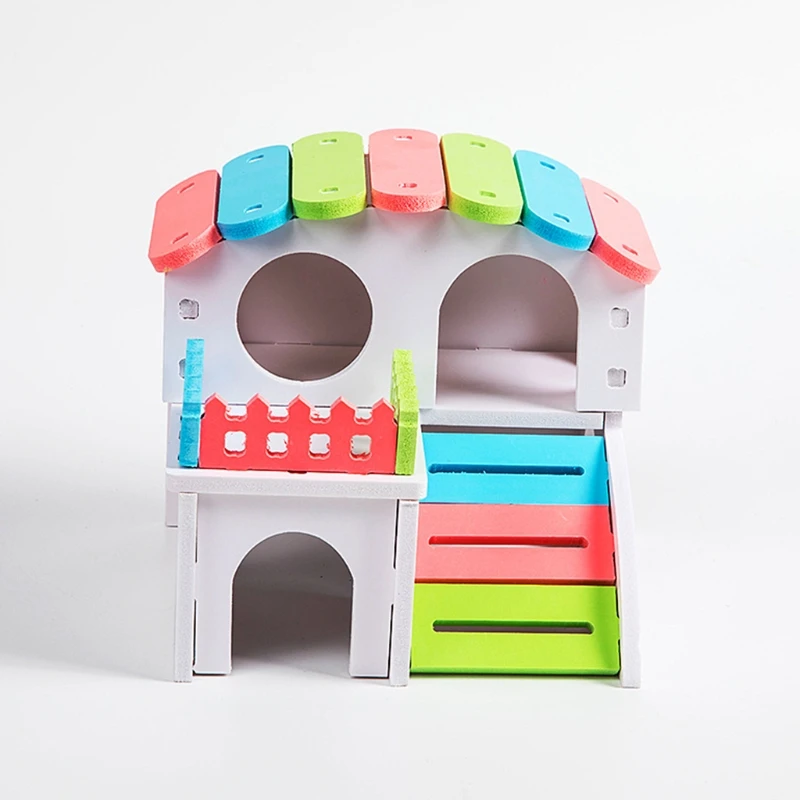 100% новый и высокое качествоРадуга Цвет хомяк Гнездо Спальный дом роскошная вилла DIY hideout игрушка «хижина» для маленьких животных хомяк.Изготовлен из пластика ПВХ материал, не имеет запаха, из водонепроницаемого материала; Не линяет; Безопасный 2-этажное вилла дом для маленьких животных, скрытие, лазания по горам и играть.С лестницей и несколькими входами, способствует появлению мелких животных, гнезд и жевательные инстинкты. Идеально подходит для хомяков, мыши, чипмунка, белки и других маленьких пушистых животных.Тонкое мастерство. Легко для вас собрать, сделай сам красивый дом для вашего друга.Готовая вилла Таблицы размеров около 13x14,5x13,5 см/5,12 "x 5,71" x 5,31 ".