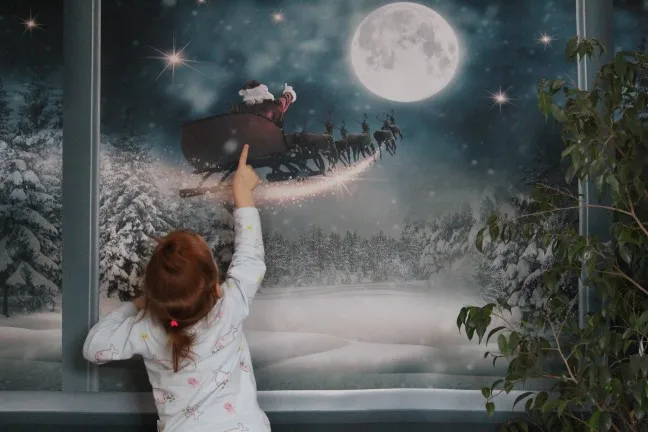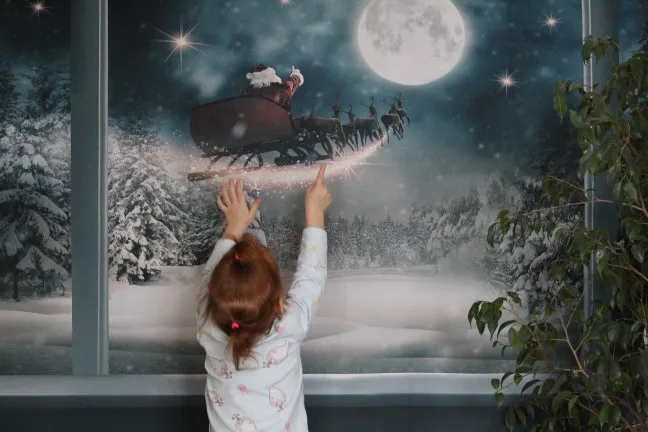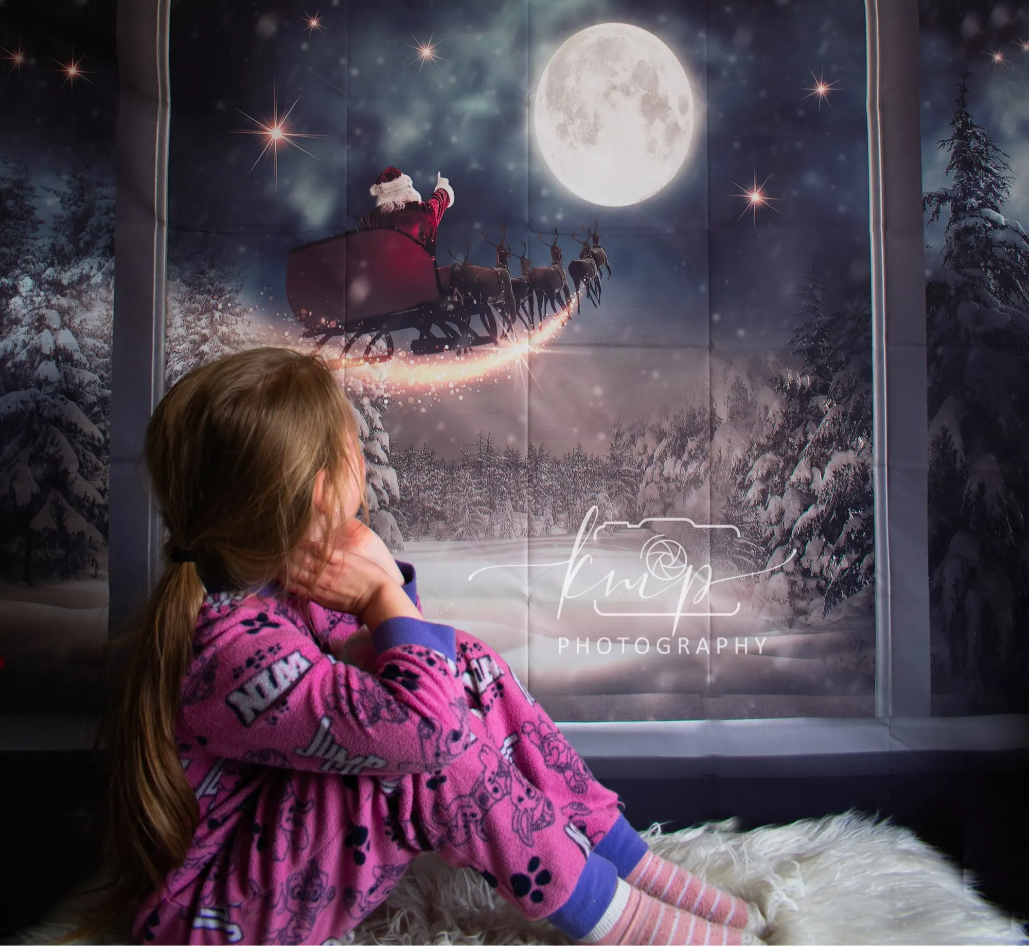 Фон для фотографирования детей с изображением окна Санта Клауса