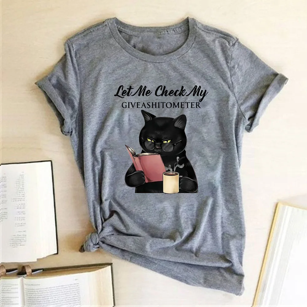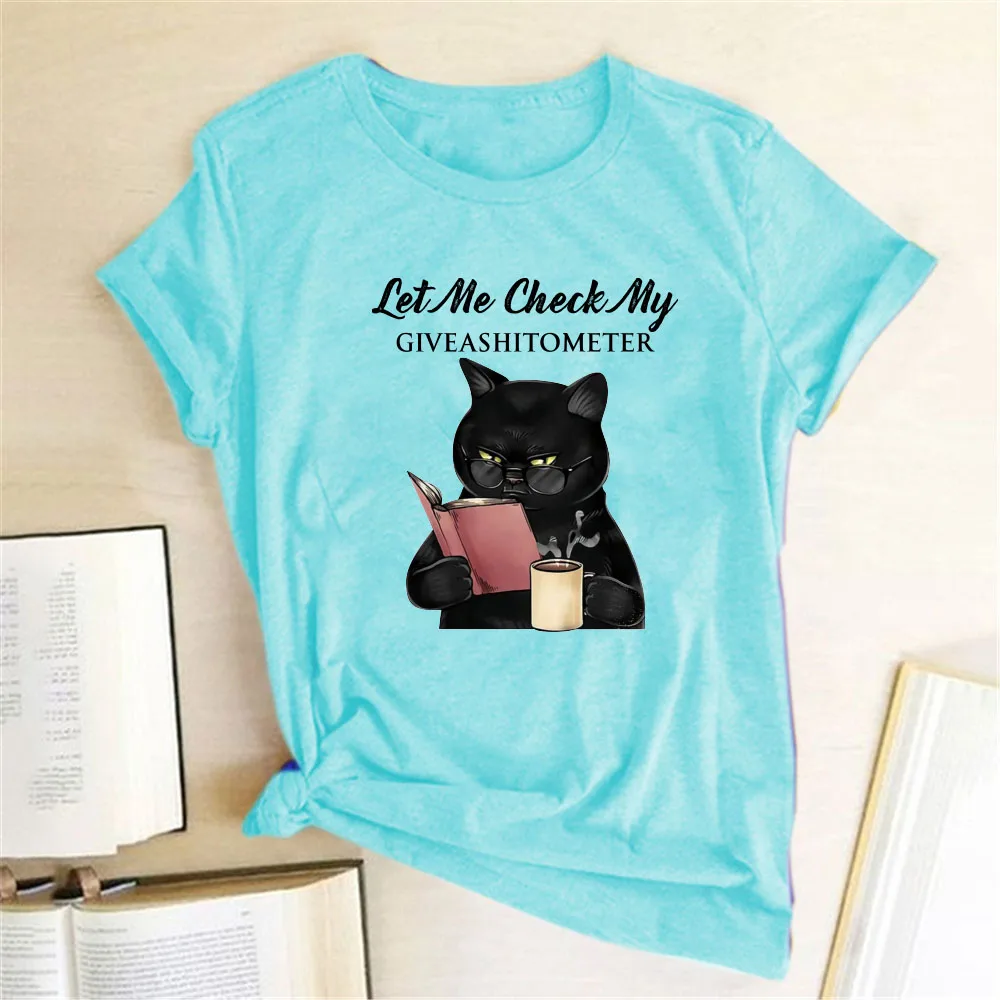 Позвольте мне проверить, что у меня есть забавные принты с надписями, черная кошка, женская футболка с коротким рукавом, летние свободные футболки с графикой