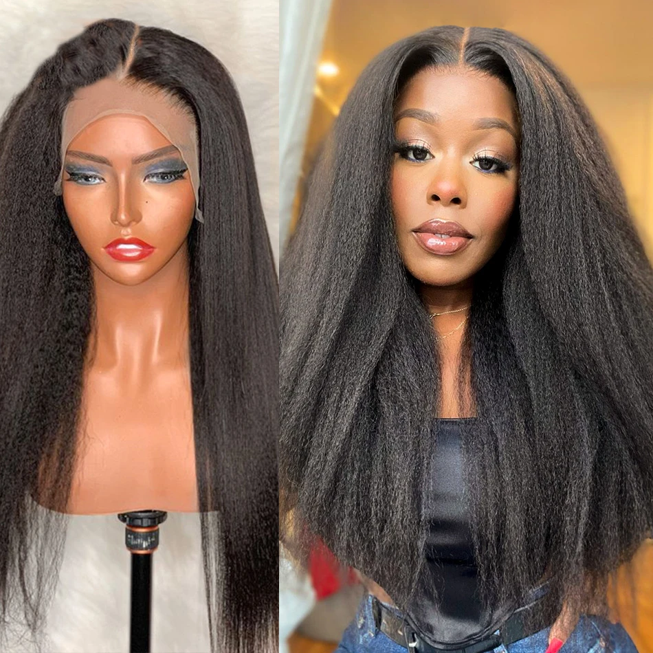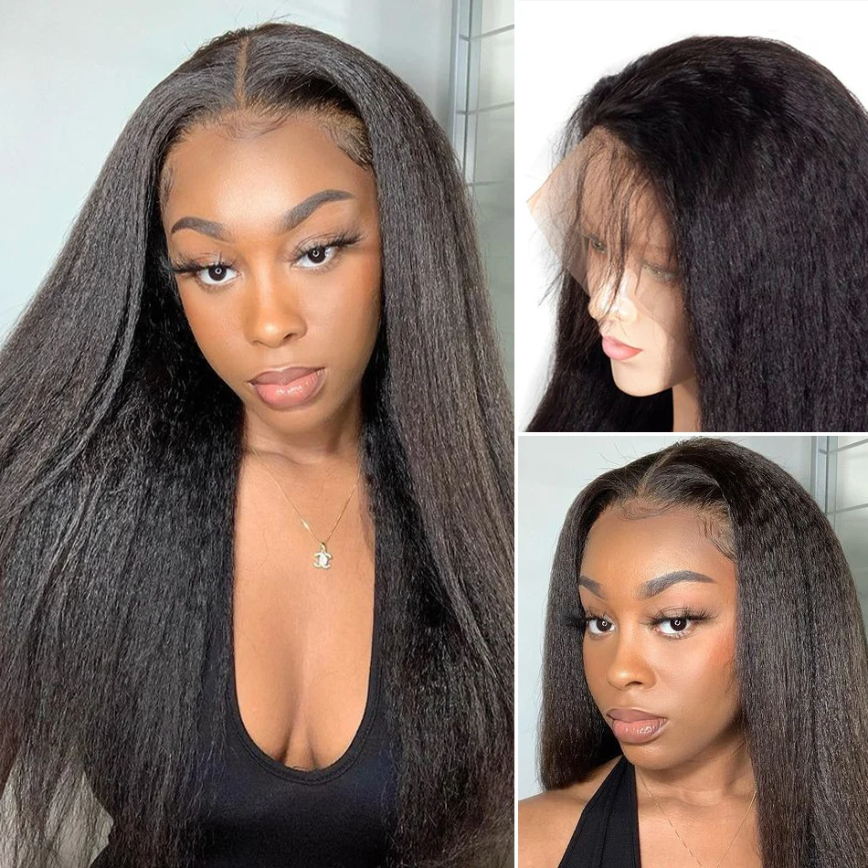 Кудрявые прямые T-образные передние парики на сетке, плотность 200%, бразильские человеческие волосы без повреждений, 30, 32 дюйма, недорогие предварительно выщипанные Yaki для черных женщин