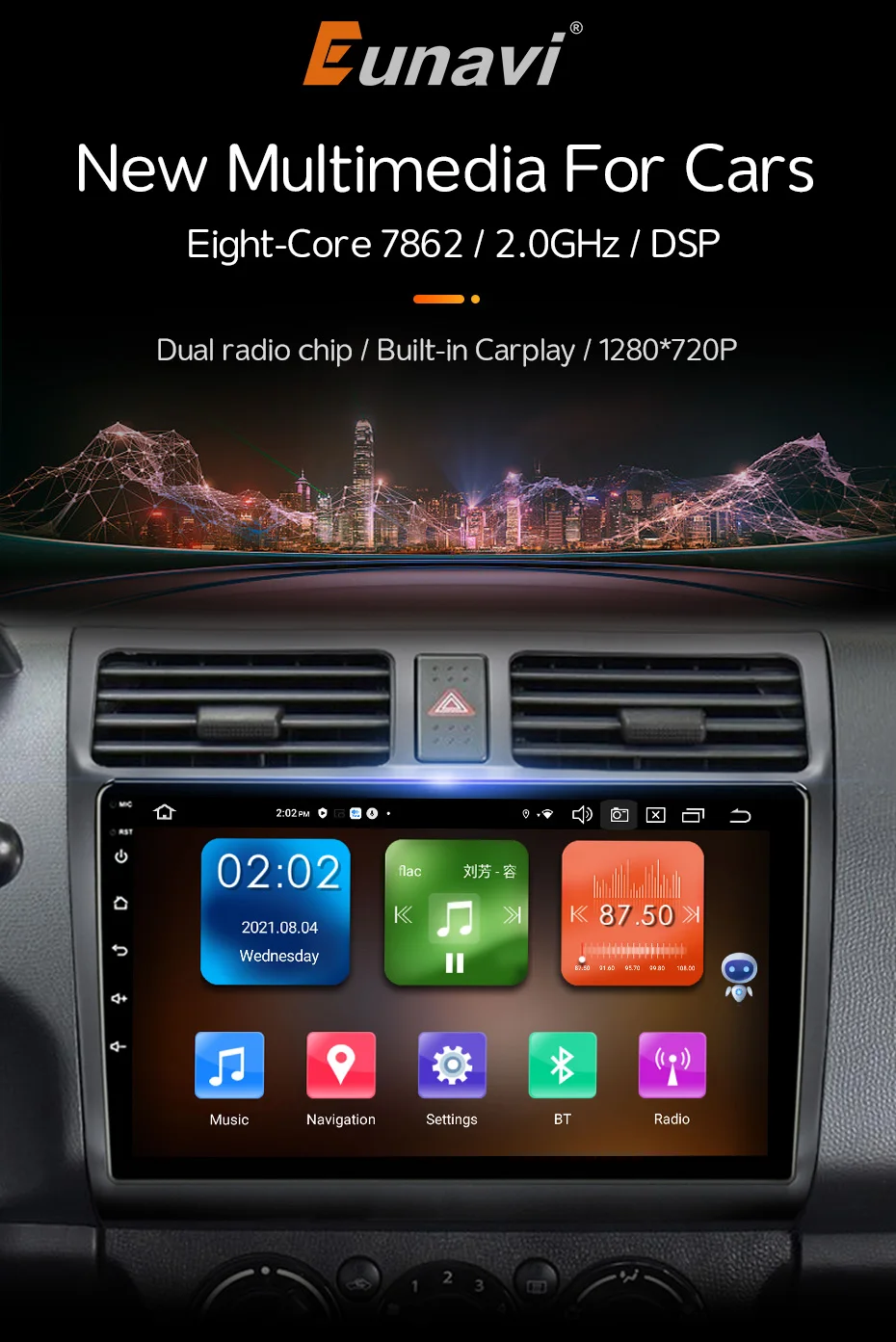 Автомагнитола Eunavi 2 Din, мультимедийный проигрыватель на платфор...