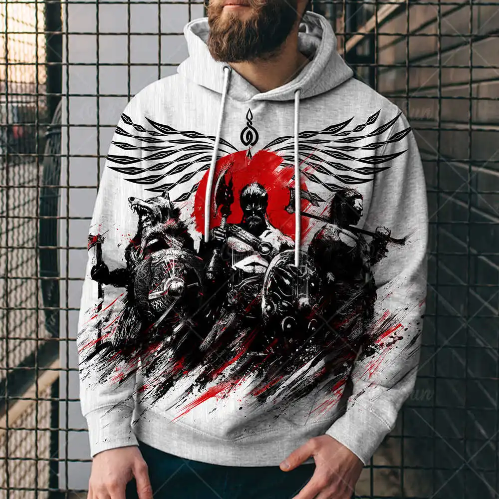 Толстовка мужская с 3D-принтом Викинги, уличный стиль, одежда в сти...