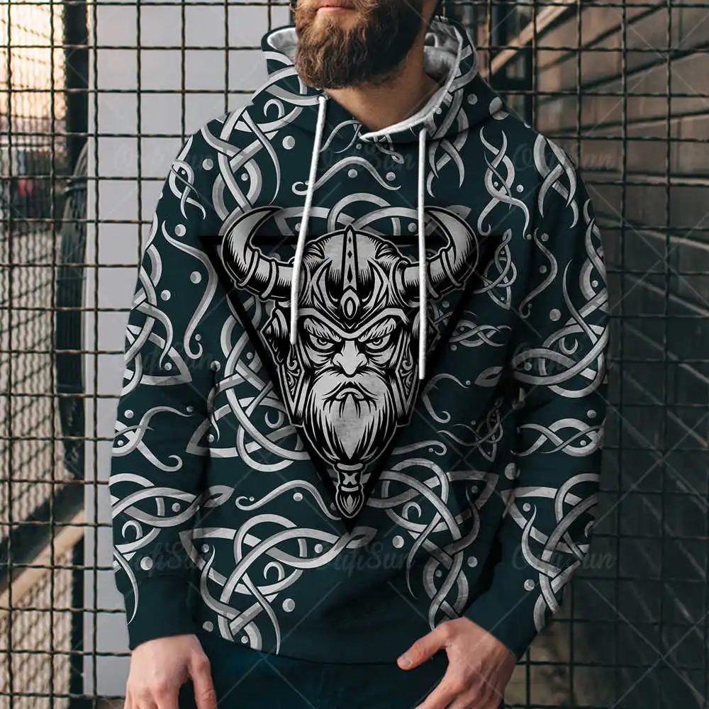 Толстовка Мужскаяженская с принтом викингов, модная уличная кофта с...