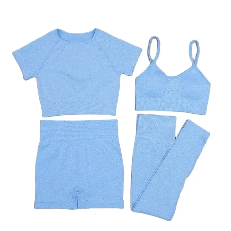Комплект спортивный женский бесшовный, комплект из 4 предметов, кор...