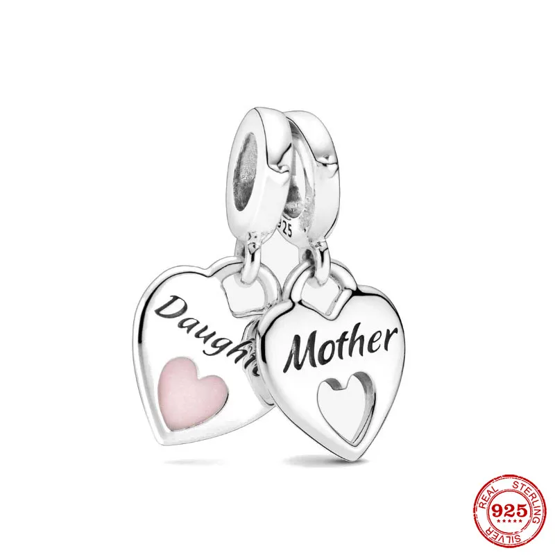 Шармы-подвески для браслета Мама и дочка, для женщин, серебряные бусины 925 пробы