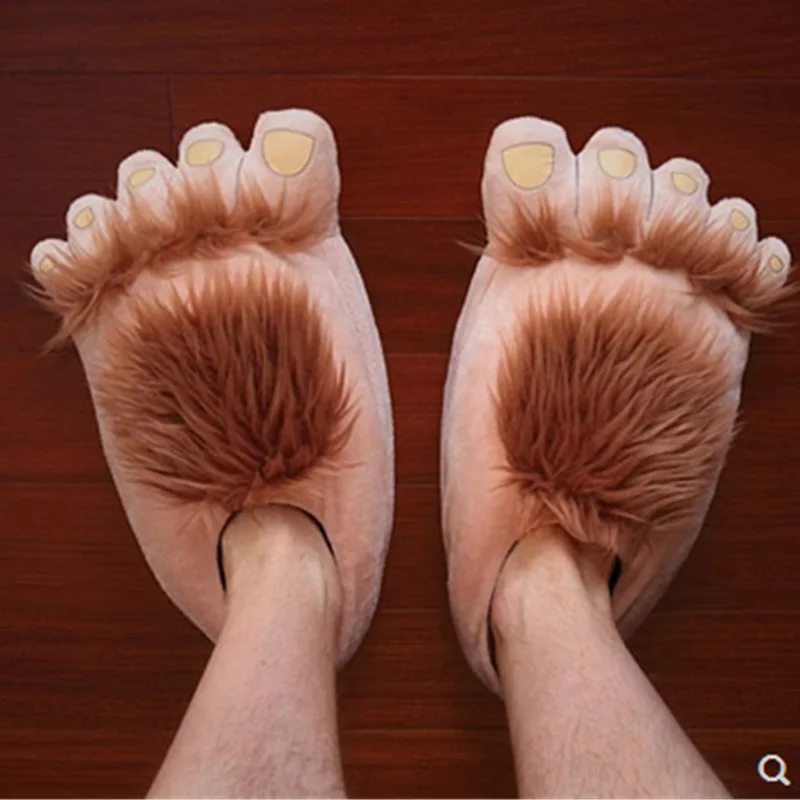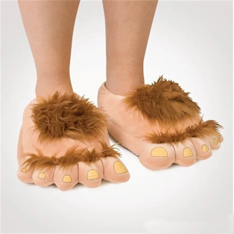 Однотонные тапочки в виде медвежьих лап, унисекс, мужская обувь с массивным медвежьим носком, дизайнерская теплая обувь Bigfoot тапки для дома помещений Furry Shoes