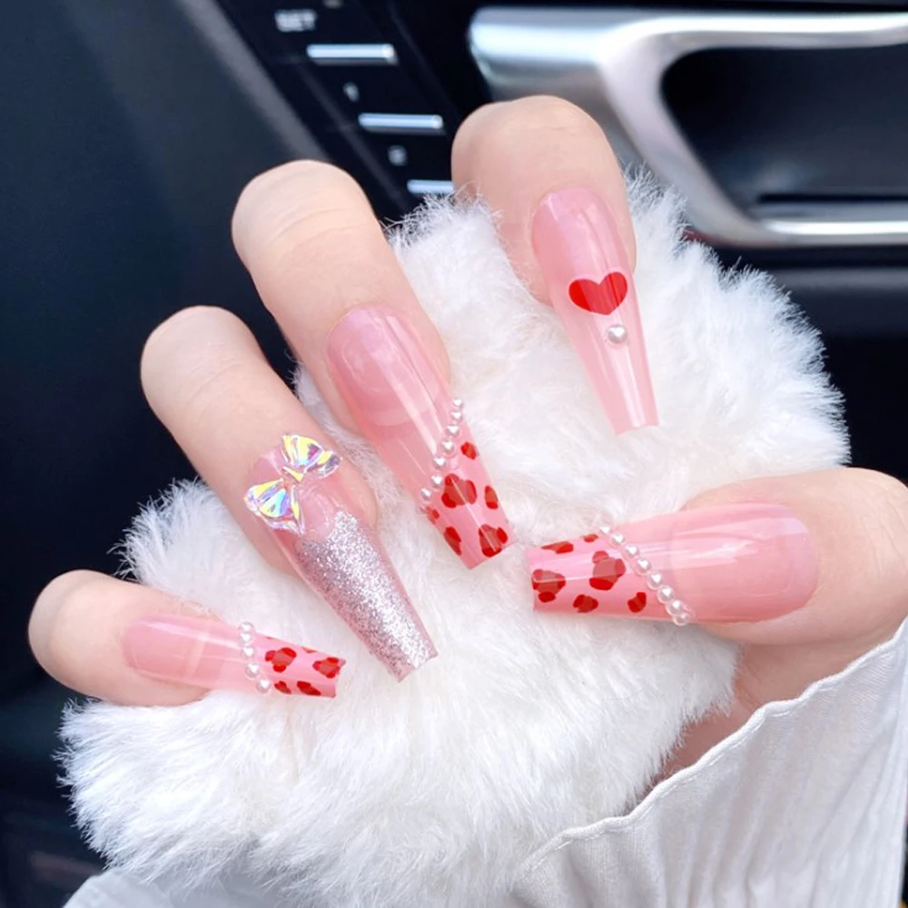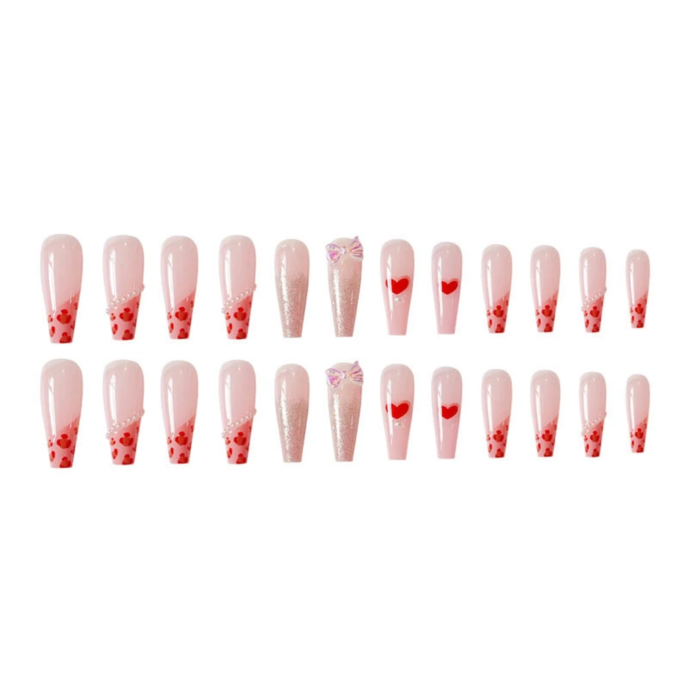 24 шт.кор. накладные ногти в форме сердца с длинным гребнем, дизайн...