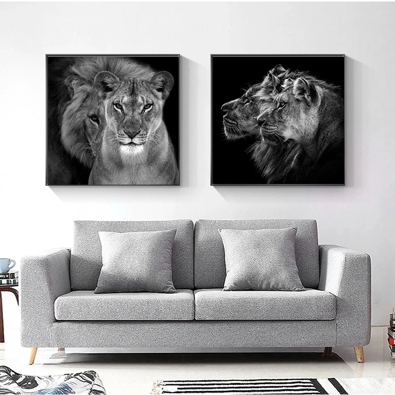 Картина на холсте с изображением Льва, черного и белого цветов