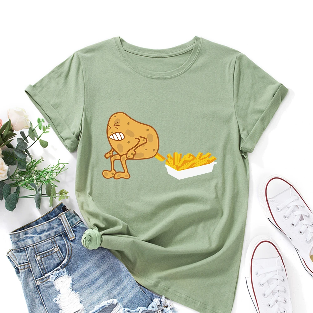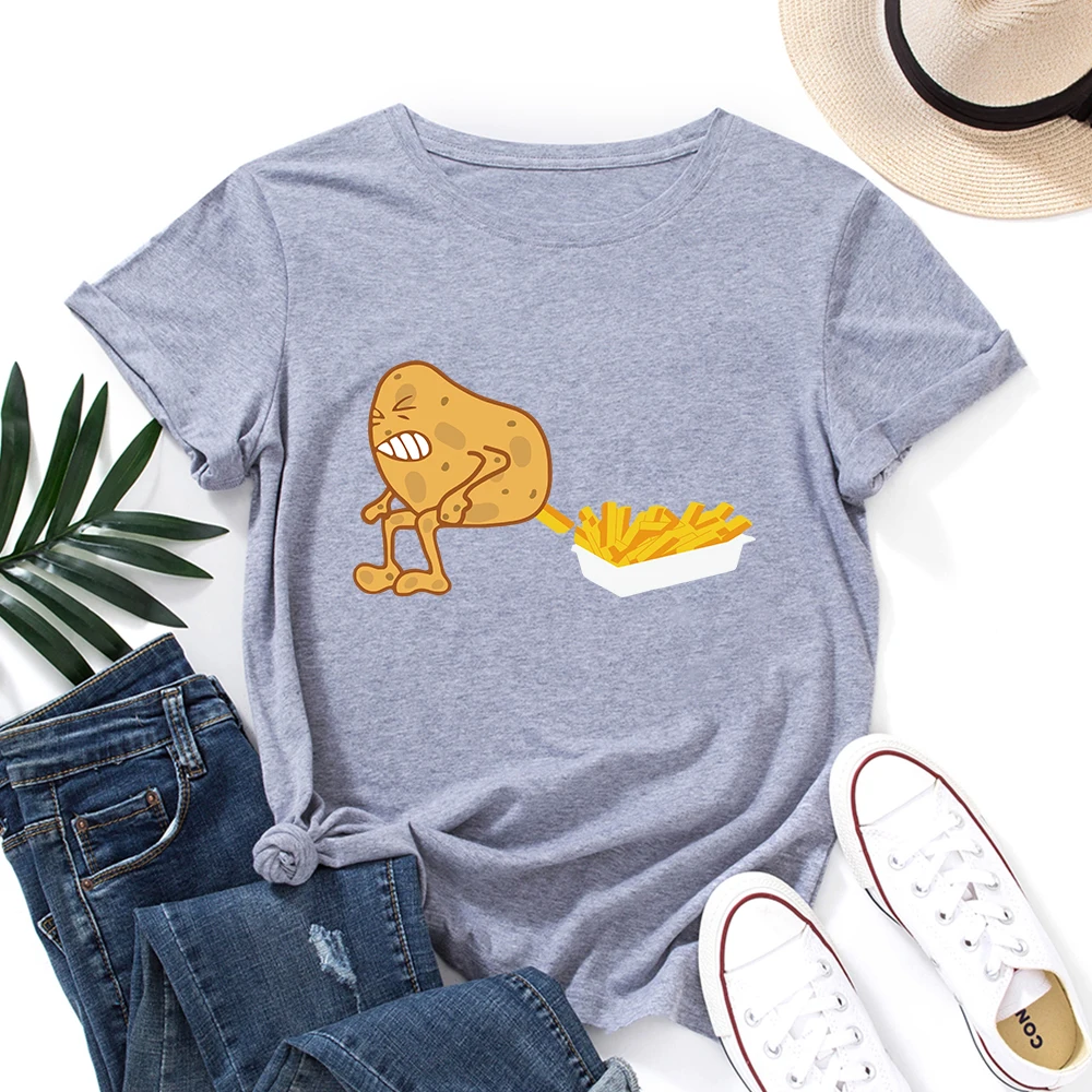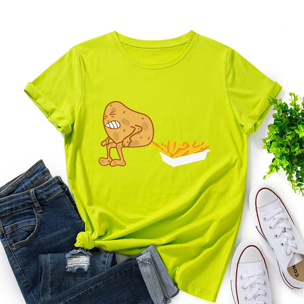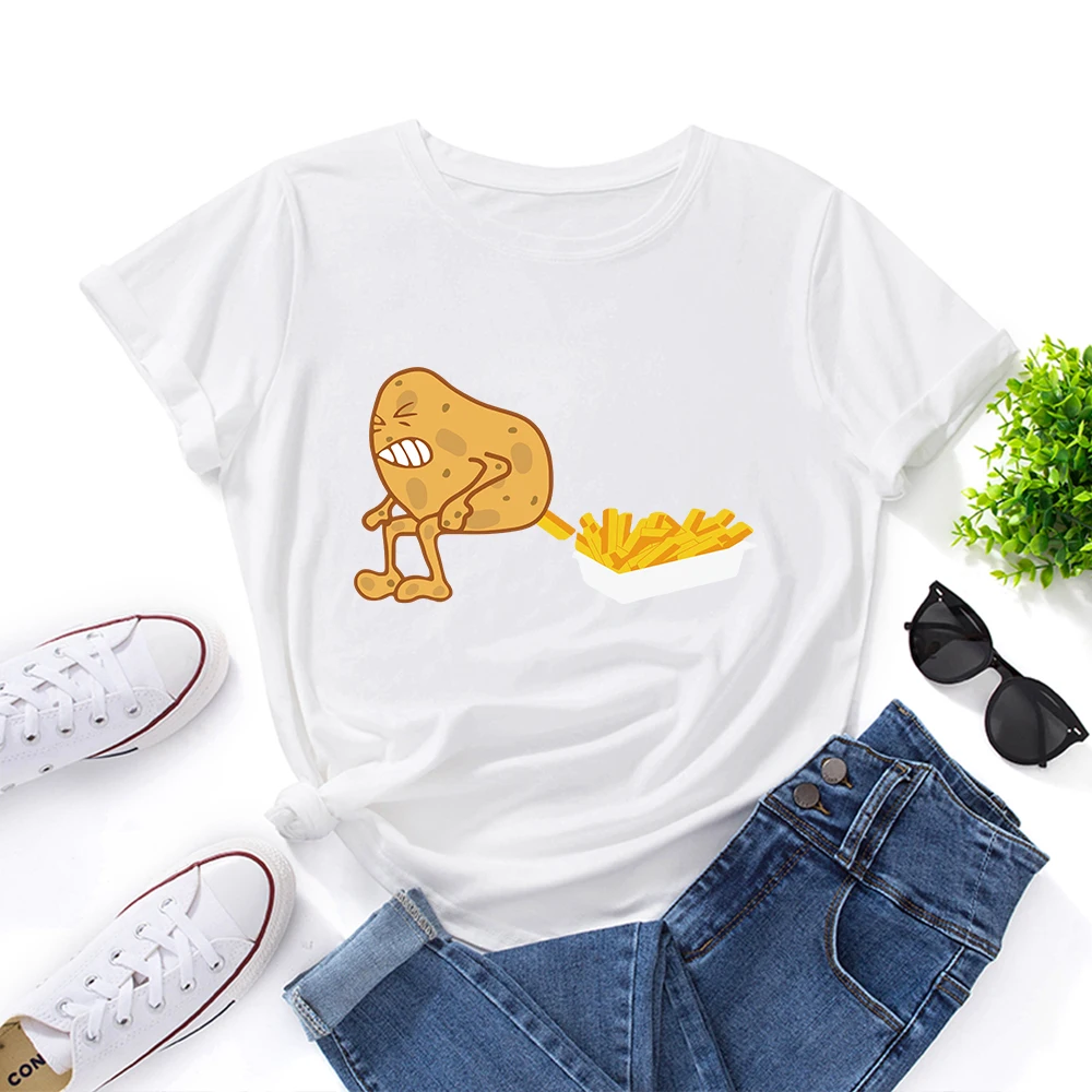 Футболка женская хлопковая с коротким рукавом, с рисунком картошки фри и картошки
