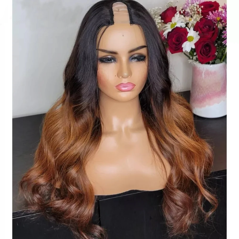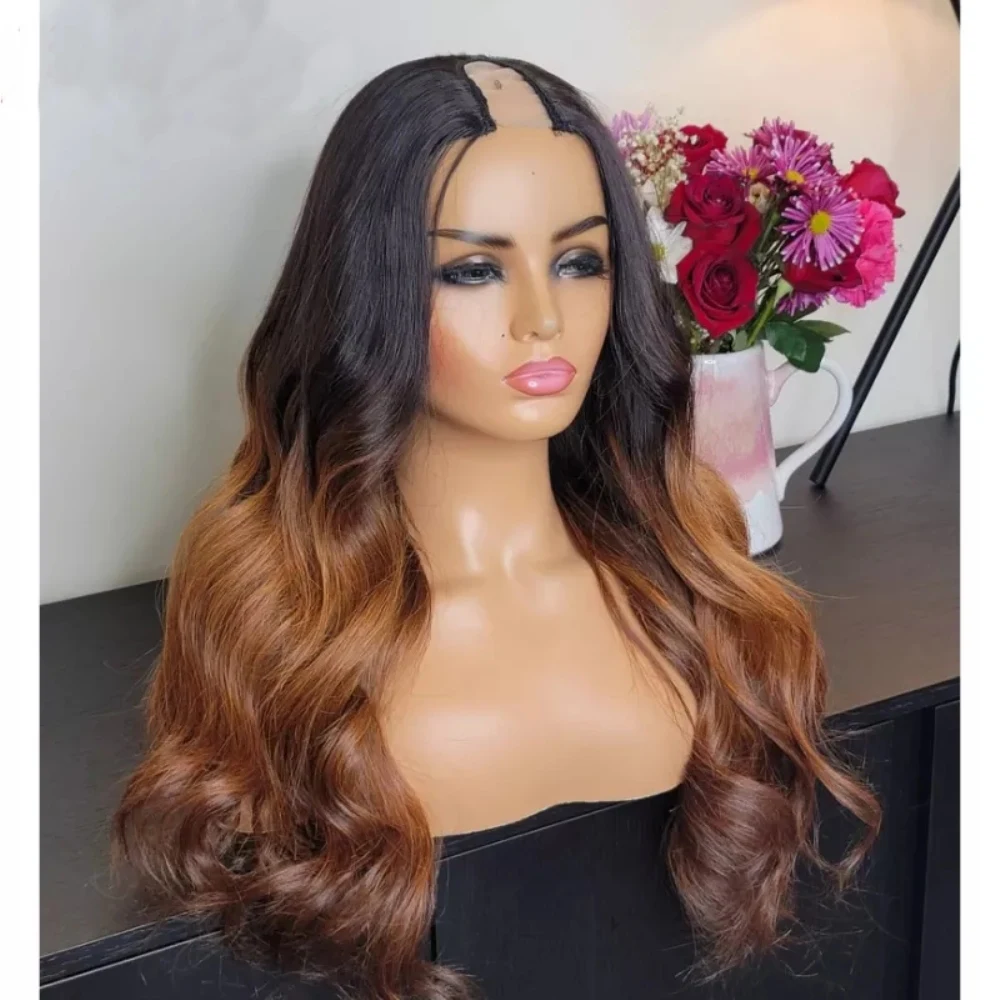 1*42*4 парик с эффектом омбре, U-образный парик, волнистые человеческие волосы, парики без клея, полностью машинные парики для черных женщин