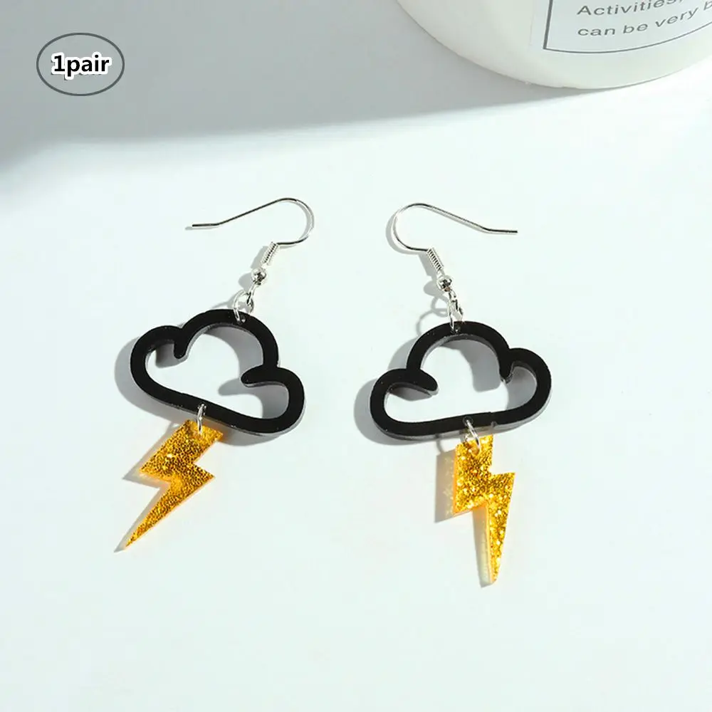 Забавные новые длинные Подвесные серьги-капли с молнией и облаком д...