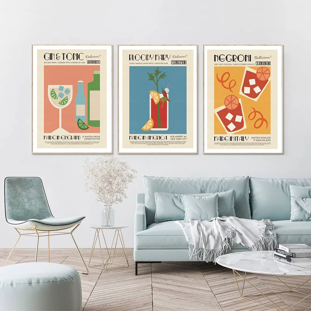 Картина на холсте фруктовый сок, мультяшный тоник, картина-постер и печать, настенное украшение для гостиной