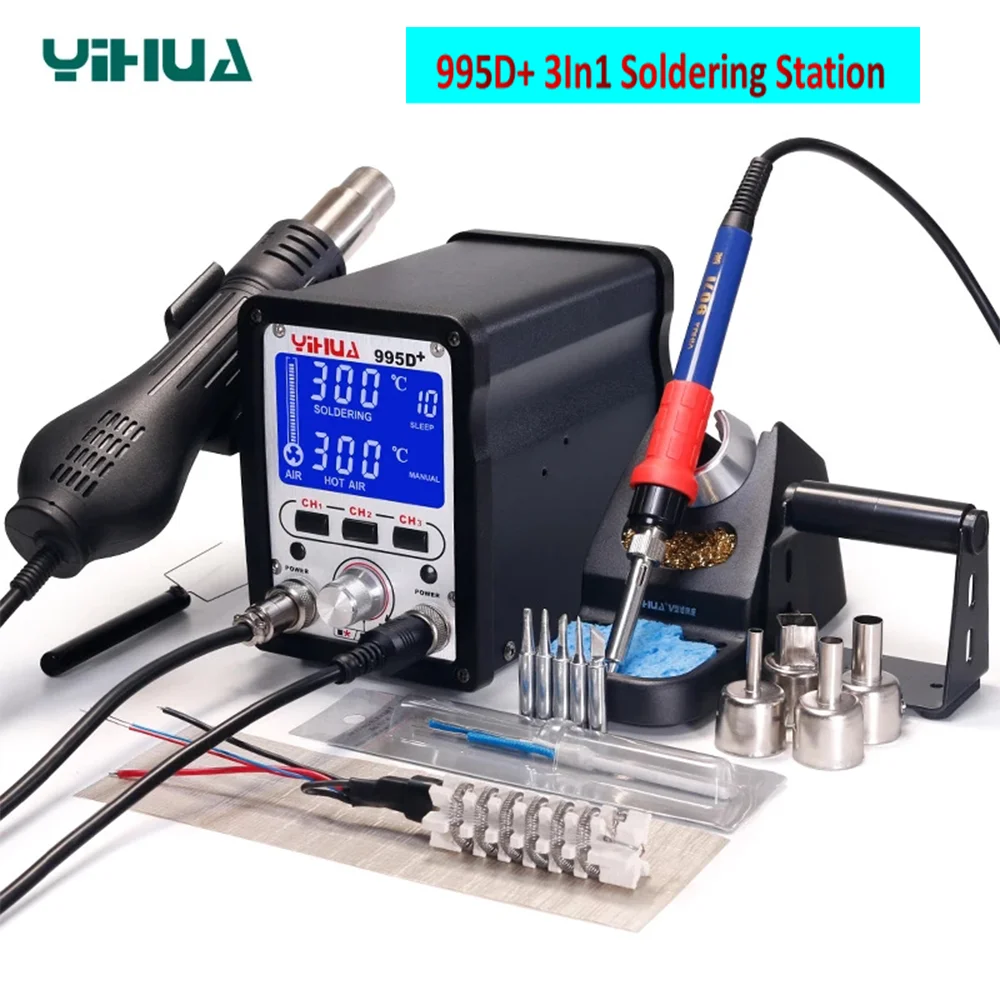 Паяльная станция YIHUA 995D + SMD, планшетофон с горячим воздухом, стандартный паяльник Ti 2 в 1, станция для пайки BGA, инструменты для ремонта сотовых телефонов