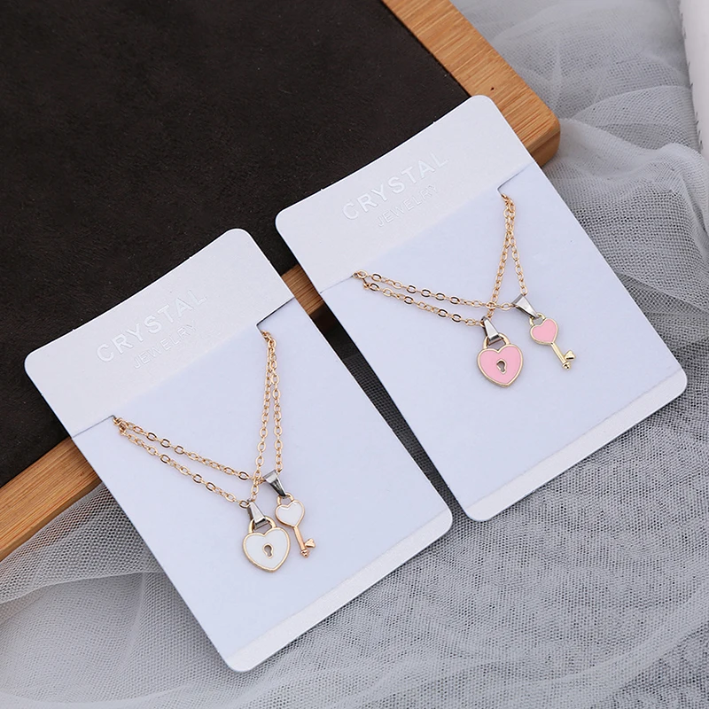 Ожерелье для пары, романтическое ожерелье с подвеской в виде сердца с замком-ключом, золотая цепочка из звеньев, модные ювелирные изделия, двойное ожерелье, 2 шт.компл.