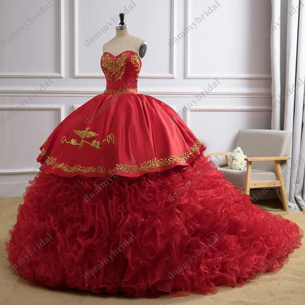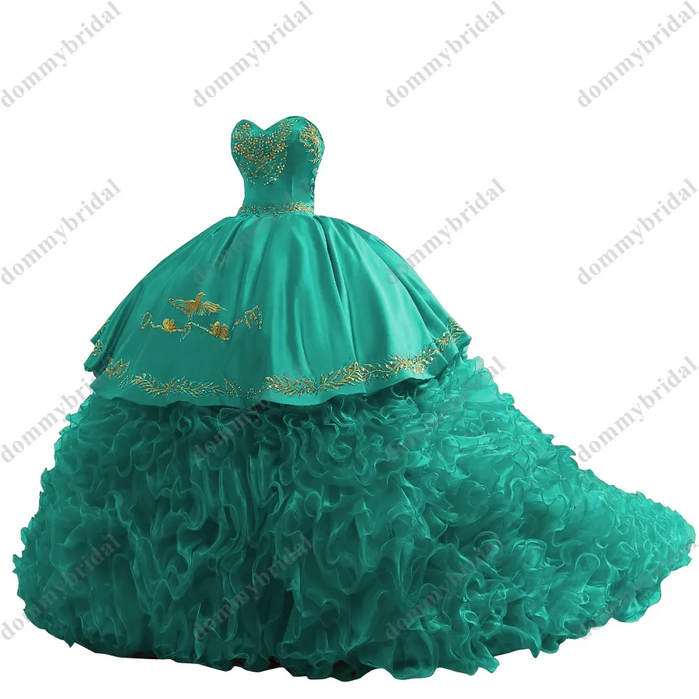 Бальное платье 15, 16, XV, бальное платье, праздничные платья для девушек, пышная юбка с золотым узором и оборками, платье Charro для выпускного вечера, 2022