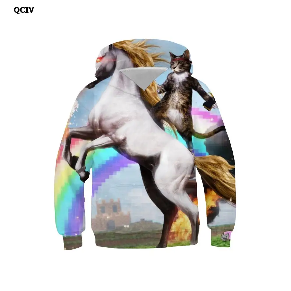 3d толстовки QCIV, свитшоты с единорогом для мальчиков, Повседневная Женская толстовка с капюшоном в виде животного, с принтом в виде туманности, детская одежда в стиле хип-хоп