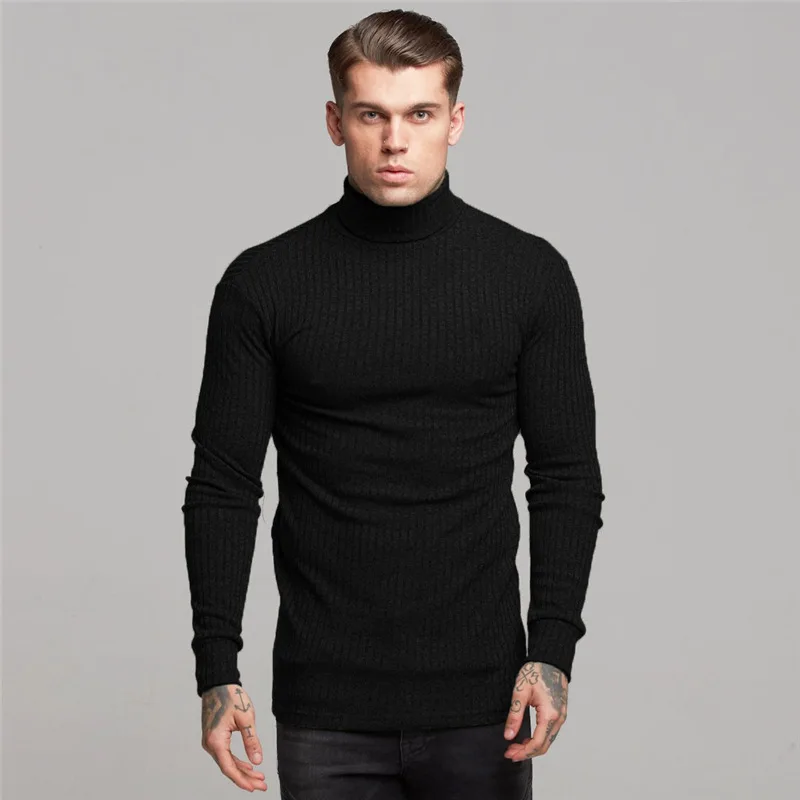 Мужские свитера с высоким воротом, зимние тонкие пуловеры для мужчи...