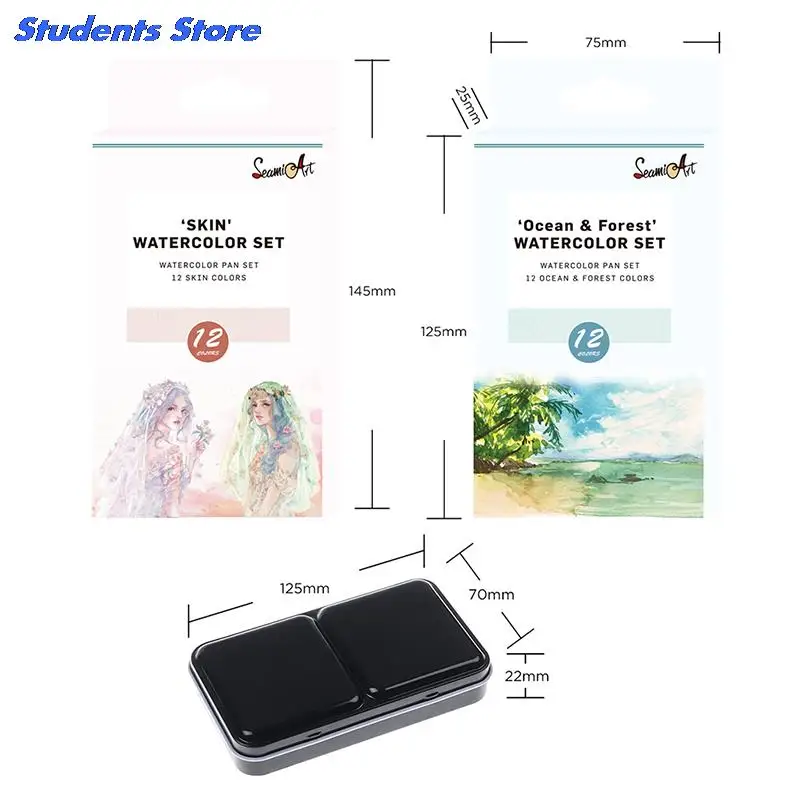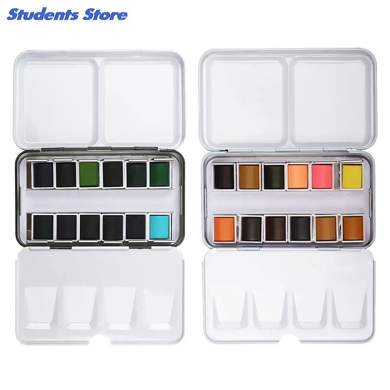 Жестяная коробка 12 цветов, однотонная Акварельная краска для рисов...