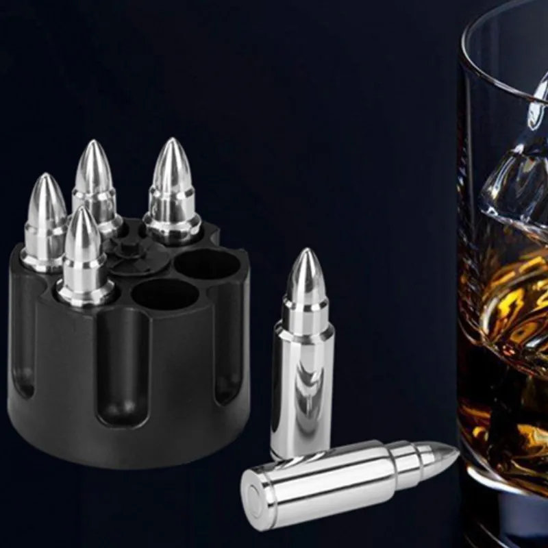 Кубики льда из нержавеющей стали в виде пули, быстрозамороженный та...