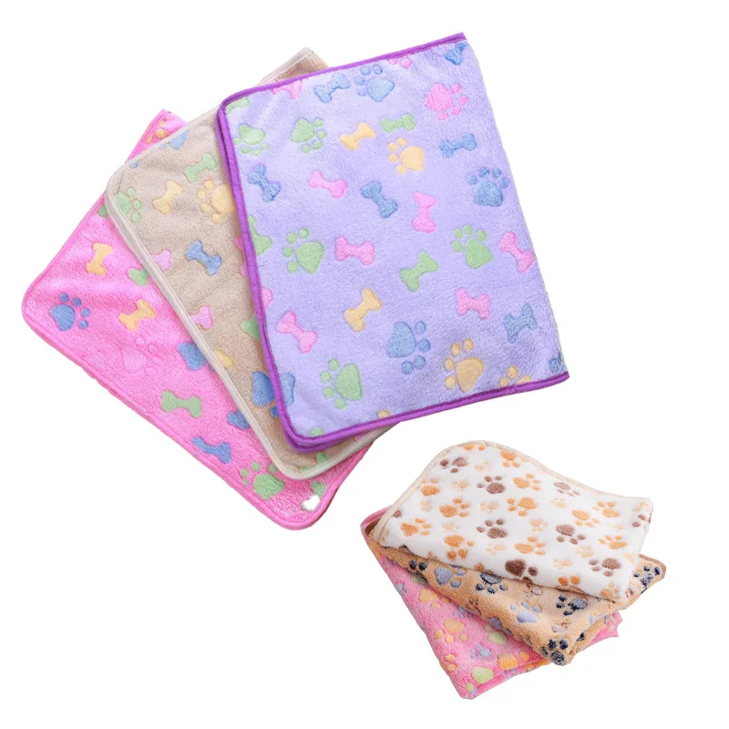 100x75 см Коврик для кровати для домашних животных, маленький, средний, большой, Towl Paw, ручная работа, принт, кошка, собака, флис, мягкое одеяло, щенок, зимняя одежда для домашних животных