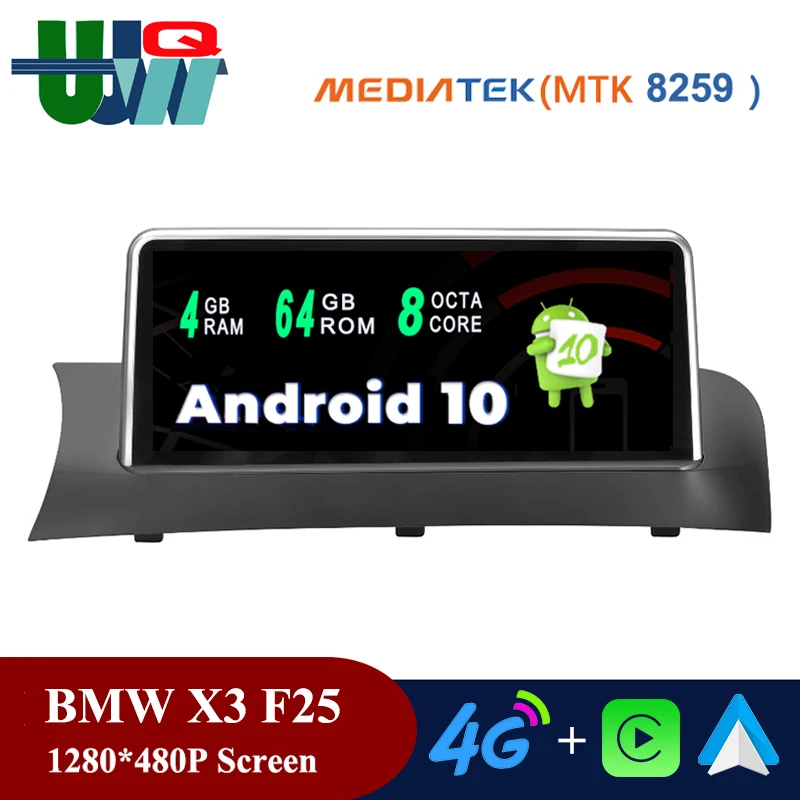 Автомобильный радиоприемник UJQW Android 10, стереоплеер для BMW X3 F25 X4 F26 2010-2017 Carplay, GPS-навигация, Bluetooth, Wi-Fi, мультимедийное видео