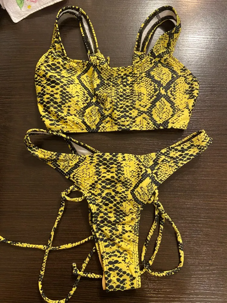 Бикини женское из двух частей с принтом, пикантный купальный костюм...