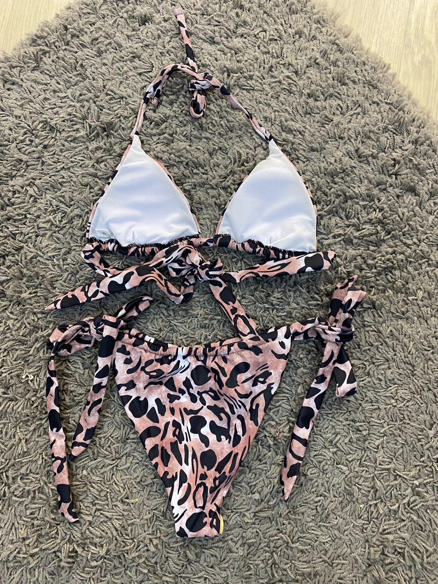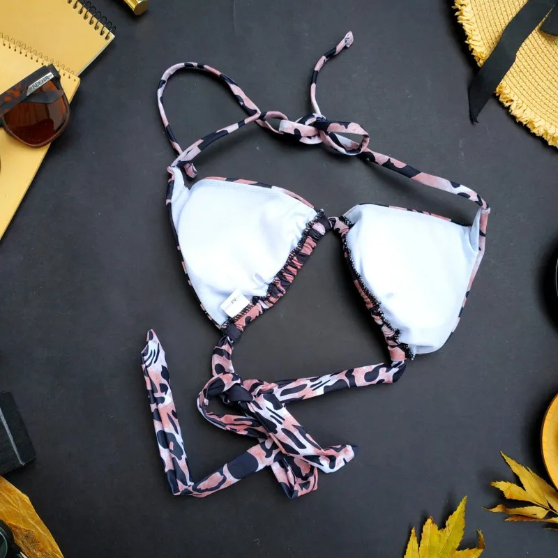 Леопардовый комплект бикини 2022, пляжный купальный костюм на шнуро...