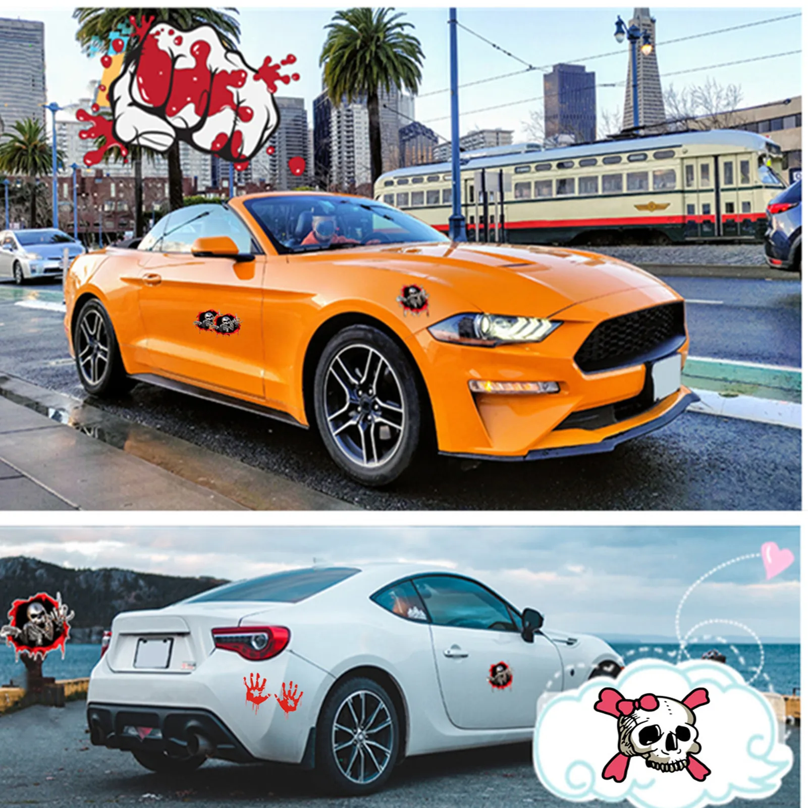 Страшная 3D наклейка на автомобиль, Череп, кровавый принт руки, наклейка на окно автомобиля, Хэллоуин, домашняя дверь, настенная наклейка, автомобильные аксессуары