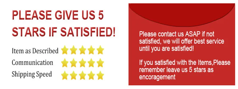 Доставка:1. Мы обычно осуществляем заказы в течение 24 часов после получения оплаты.2. Почта Китая обычных небольших пакетов плюс и Почта Китая, Зарегистрированная воздушная почта занимает estimated15-60 дней.3. Рекомендуемые поставки: Aliexpress Стандартная доставка-более стабильная, безопасная, быстрая.4. Мы также предлагаем Экспресс-доставку, такие как DHL, UPS, EMS и т. д., пожалуйста, свяжитесь с нами. Если вы срочно нуждаетесь в нем или количество большое.4. Политика Возврата;1. Мы принимаем возврат и возмещение в течение 15 дней после завершения заказа, пожалуйста, свяжитесь с нами.2. Мы осуществляем доставку по всему миру, пожалуйста, свяжитесь с нами, если у вас есть какие-либо вопросы или вопросы.3. Мы предложим лучшую цену для оптовой продажи и порекомендуем лучшую доставку.3 отзывы:1. Пожалуйста, оставьте 5 звезд отзывы, если вы удовлетворены нашей продукцией и обслуживанием, Мы будем признательны (товар, как описано 5 звезд, связь 5 звезд, время доставки 5 звезд).2. Если продукты, которые вы получили, были повреждены или неправильные стили, пожалуйста, не оставляйте отрицательные отзывы, пожалуйста, свяжитесь с нами, мы разберемся с этим и разработаем лучшие решения, ваше удовлетворение-это наше движение, чтобы сделать лучше.