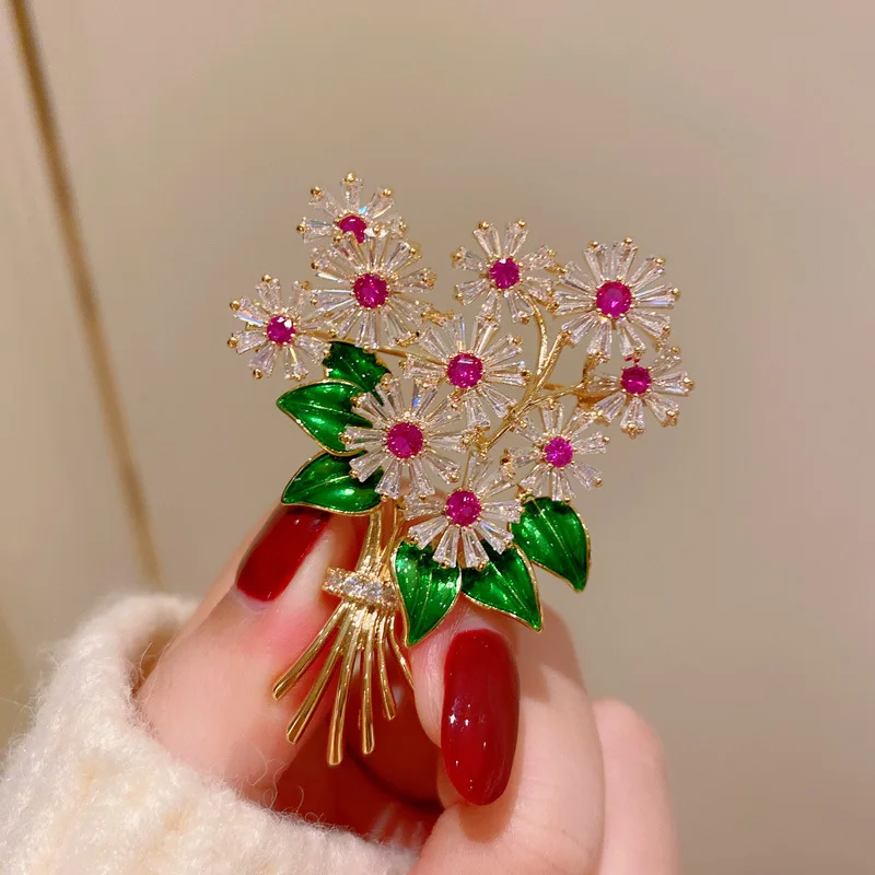 Женская эмалированная брошь в форме букета, позолоченная брошь в форме цветка с фианитом, 2021