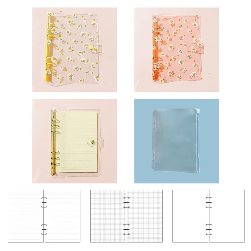 Милый цветок a6, переплет, 6 колец, Прозрачная Обложка для бумаг, ежедневник для личных ежедневников, папка для блокнотов с листьями