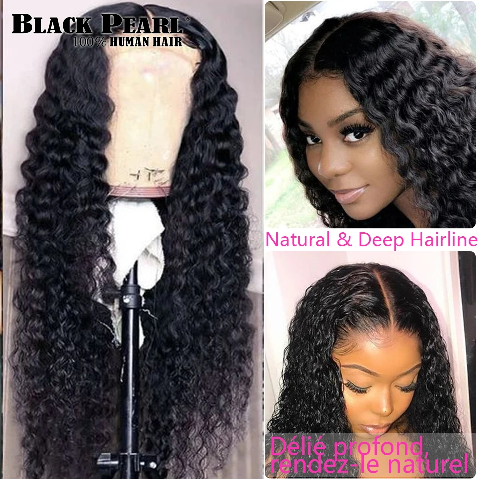 180% Бразильские глубокие волнистые фронтальные парики, глубокие кудрявые парики из натуральных волос на шнурке, Т-образные влажные и волнистые прозрачные парики на шнурке