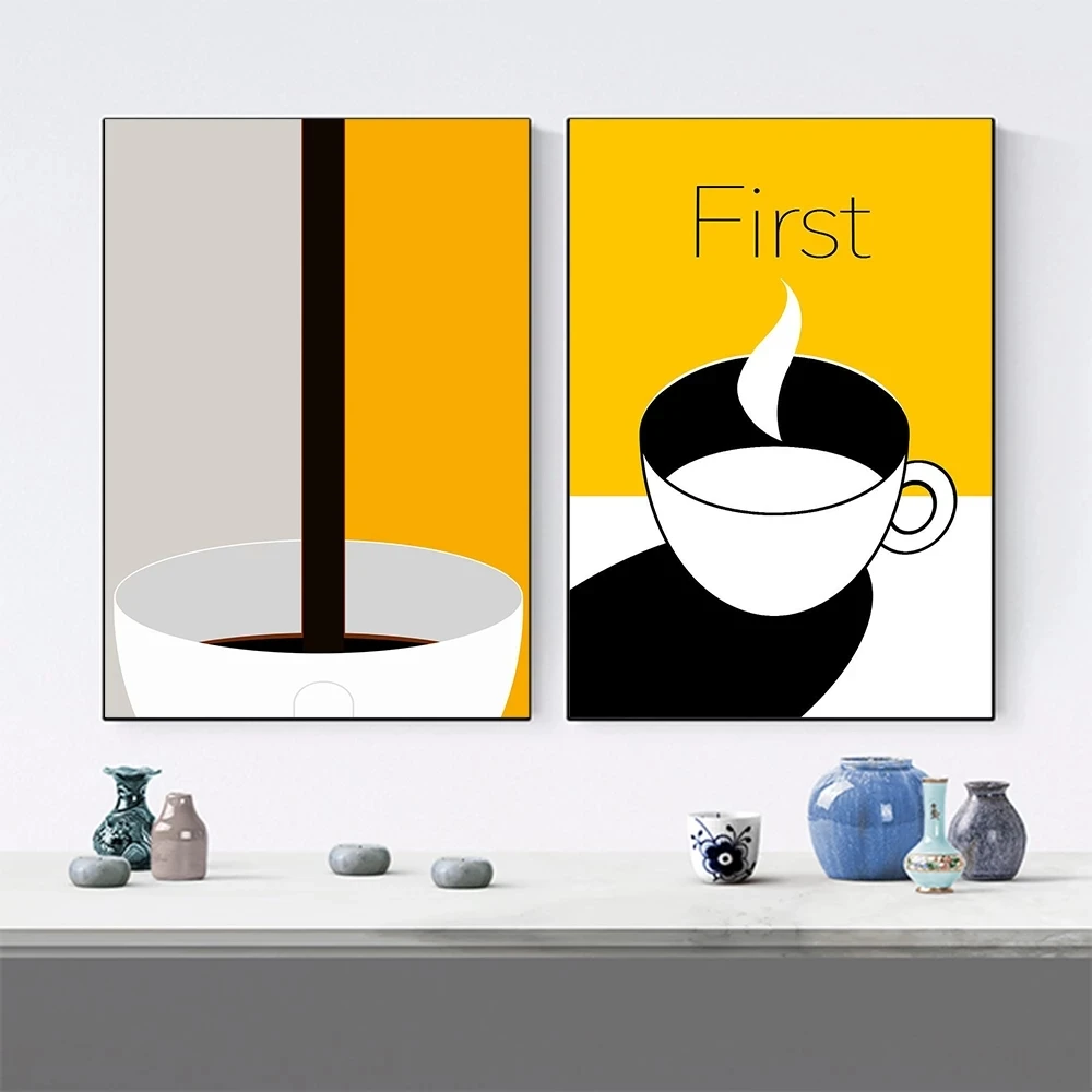 Постер и принты напитков в скандинавском ретро-стиле, холст с изображением первого кофе, современные винтажные настенные картины, Декор для дома и кафе, без рамки