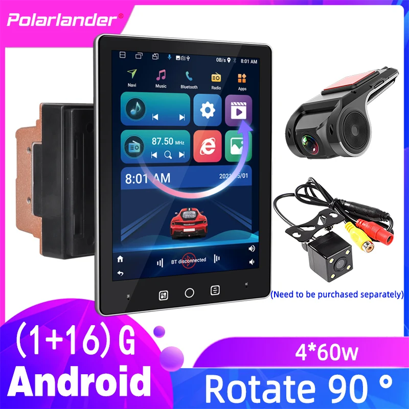 Автомагнитола 2 Din, GPS Mirror Link, 1 + 16 ГБ, сенсорный экран, Bluetooth, Android 9, 9,5 дюйма, IPS, 90 , вращающийся мультимедийный MP5-плеер