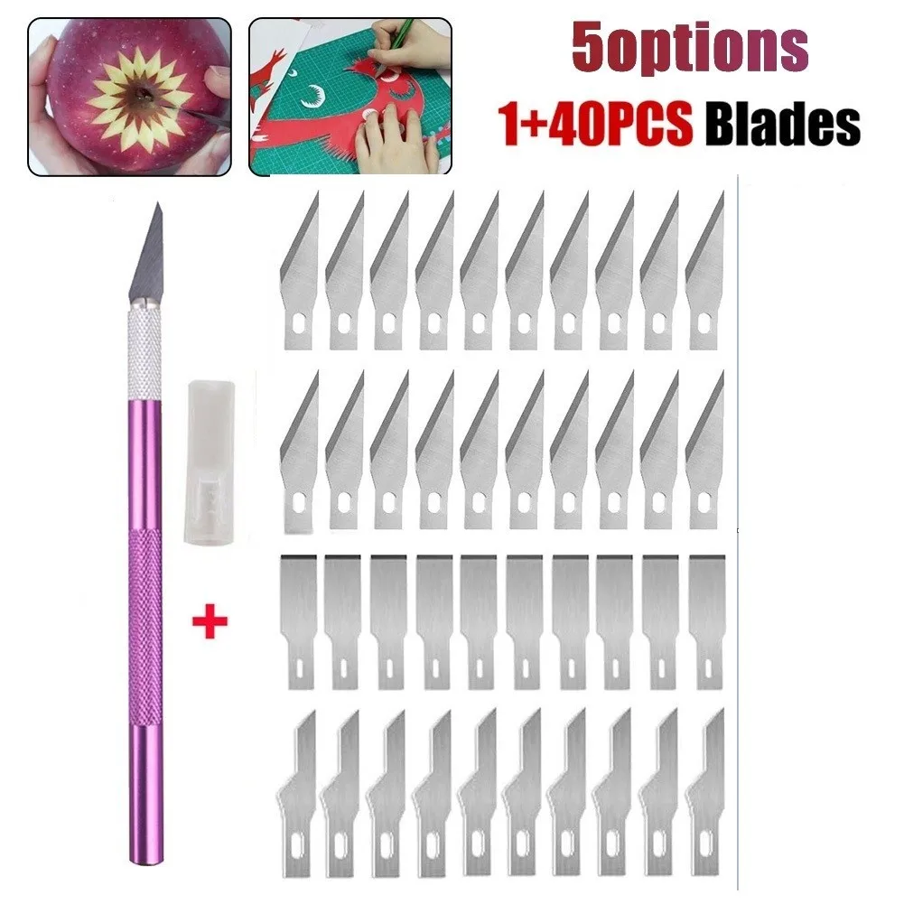 Резак гравировальное ремесло лезвие + 40 шт. лезвий искусственная печатная плата DIY нескользящий металлический скальпель ручной инструмент для ремонта