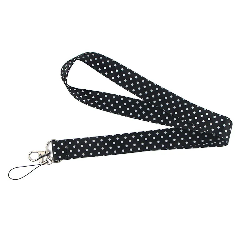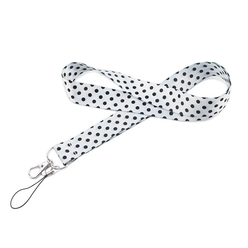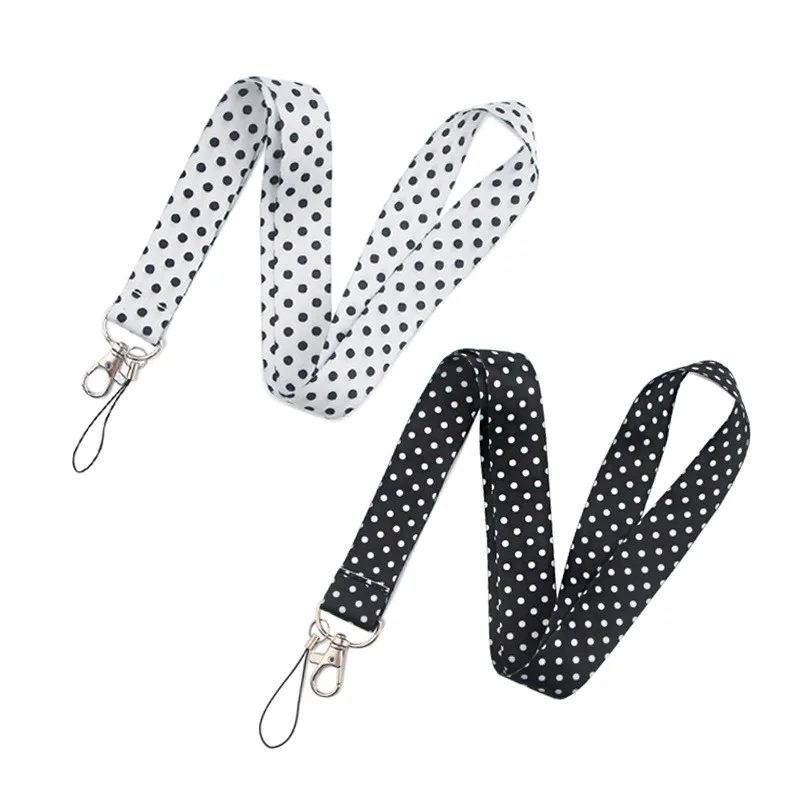Брелок в черный и белый горошек, ремешок на шею для ключей, ремешки для ID карт, держатель для бейджей, подвесная веревка сделай сам, шейный ремешок