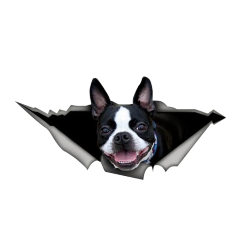 Индивидуальные автомобильные наклейки, аксессуары, 3D Бостон-терьер, животные, автомобильная декоративная наклейка, автомобильное окно, водонепроницаемая ПВХ, 13 см X 6 см