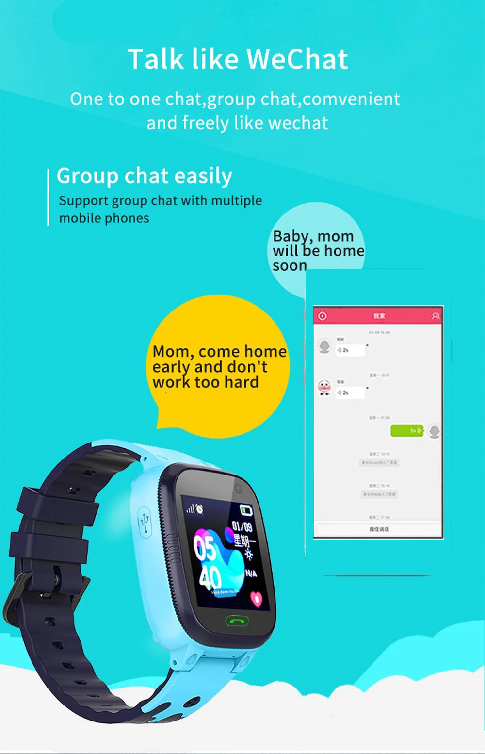 Часы-Будильник, зона безопасности, SOS аварийный сигнал, сигнал низкой мощности, удаленное выключение, освещение, игры, фотосъемка и удаленное фотографирование