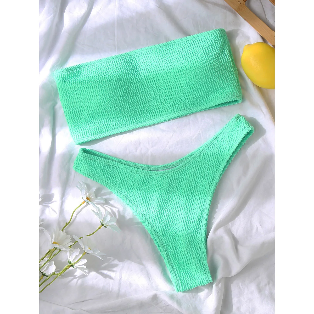 2021 сексуальный женский купальник, однотонный купальник, Женский бандо с высокой талией, стринги, бразильский комплект бикини, купальный костюм для женщин