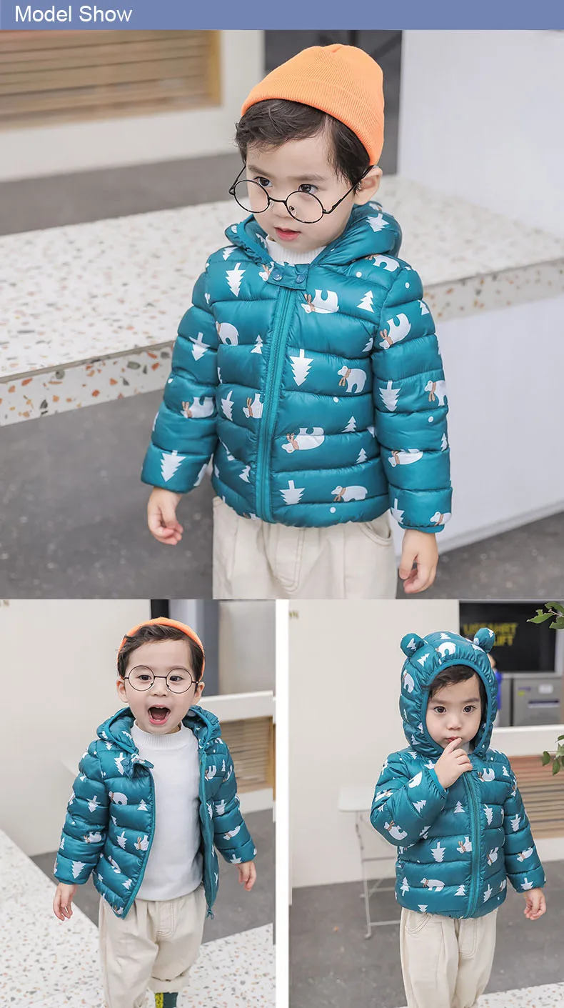 Пуховики с капюшоном для маленьких девочек; Детские пальто; Осенняя теплая куртка с рисунком для мальчиков; Куртка на молнии для маленьких девочек; Верхняя одежда