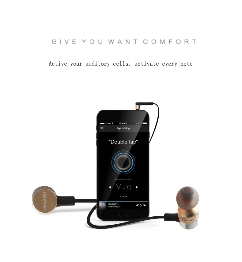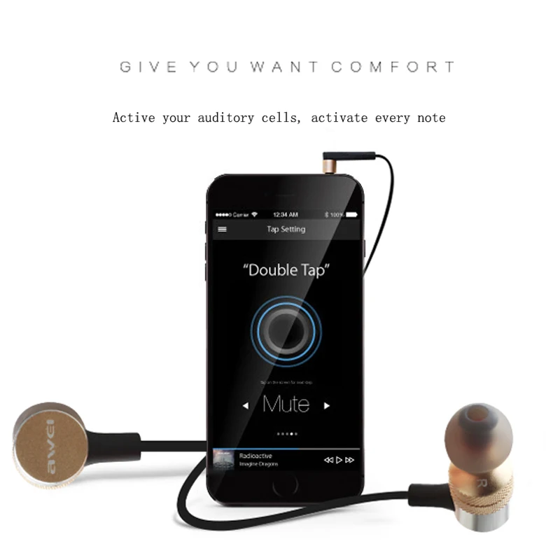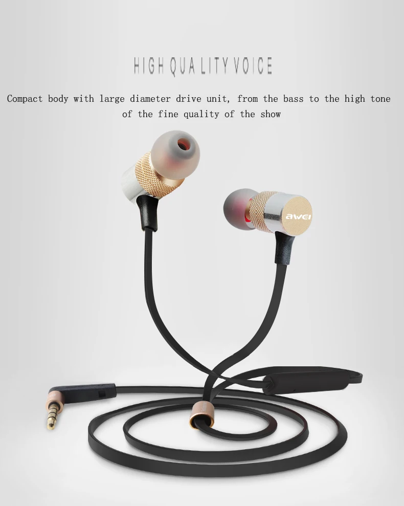 Наушники-вкладыши Awei, металлическая Спортивная гарнитура с басами для Xiaomi, iPhone, Samsung, Huawei