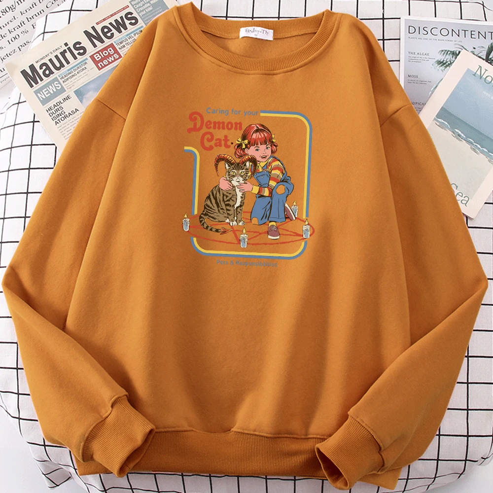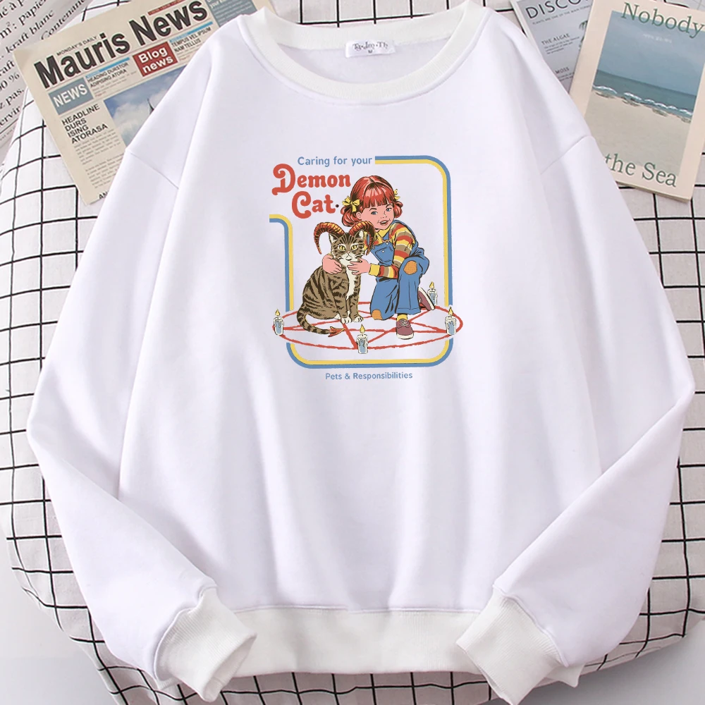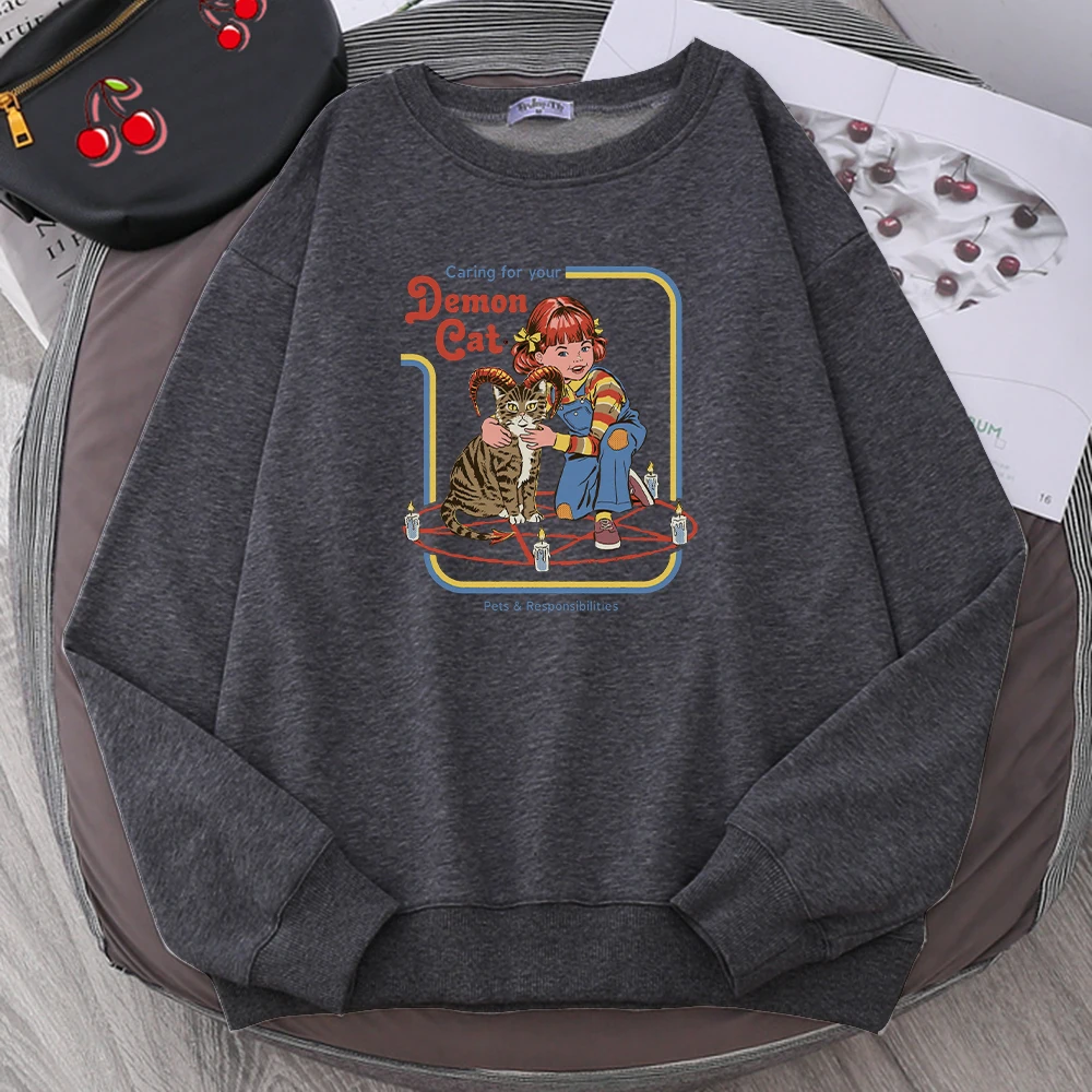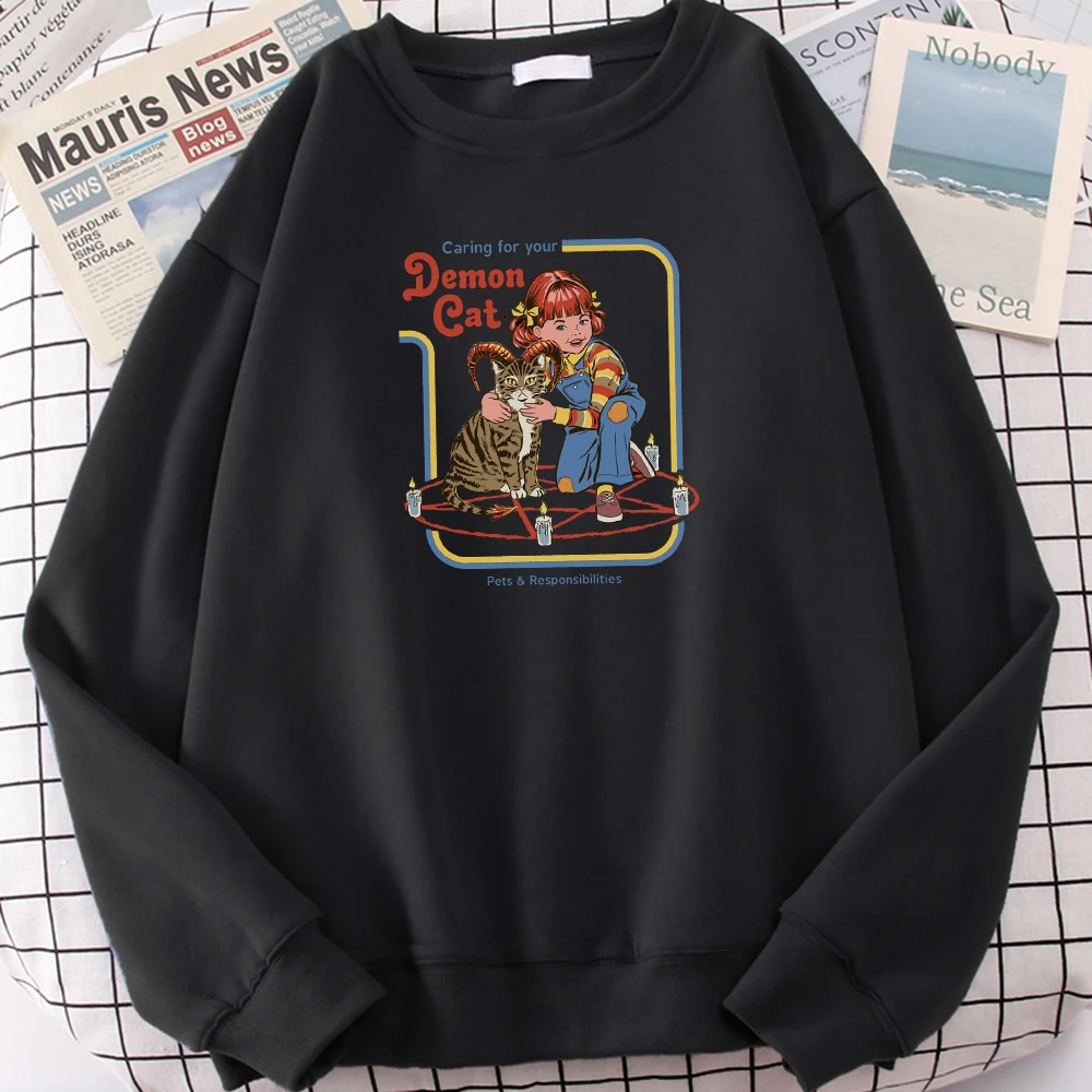 Женская толстовка с капюшоном и принтом в виде кошки-демона