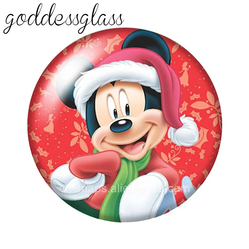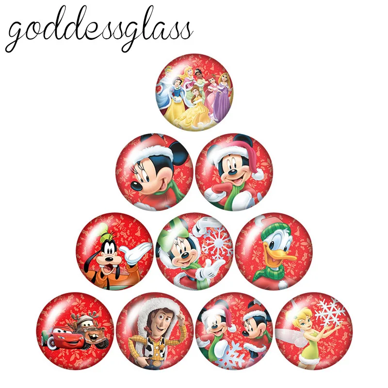 Подарок на Рождество, Микки, Принцессы Диснея, 10 шт., 12 мм18 мм20 мм25 мм, круглое фото, стеклянный кабошон, ожерелье с плоской задней частью, фурнитура для изготовления