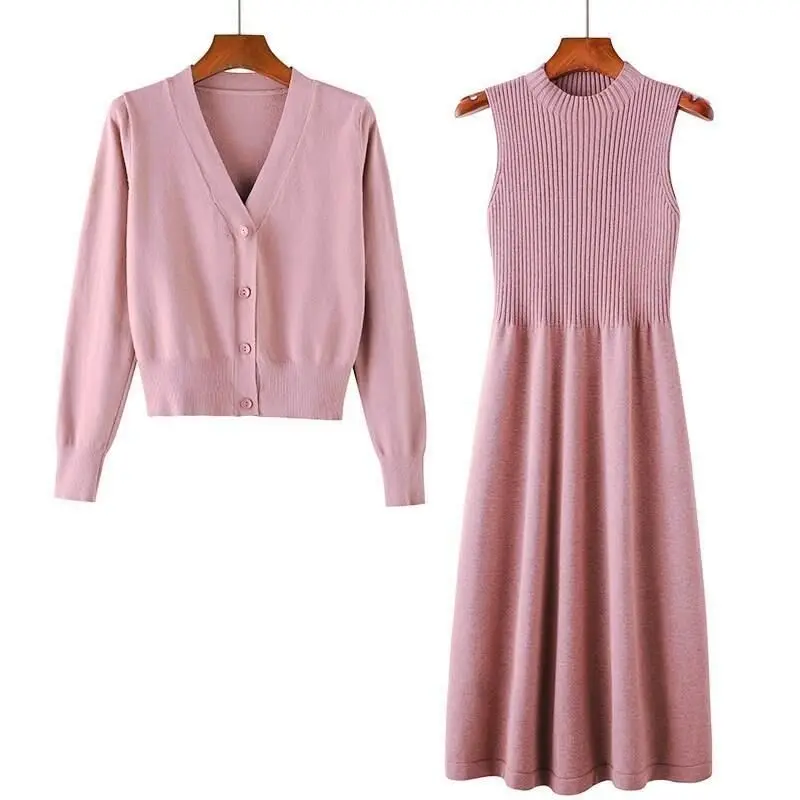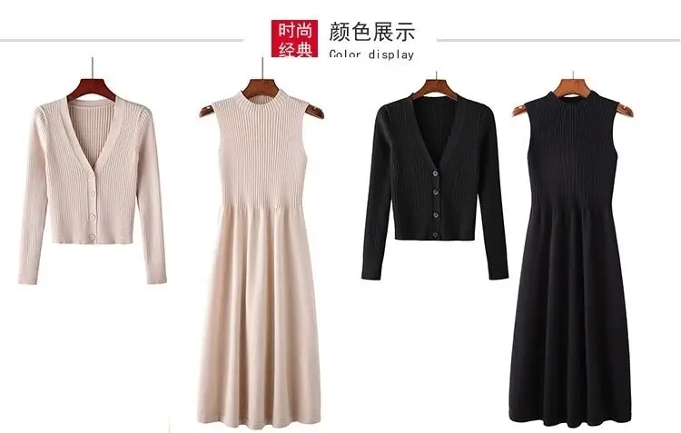Осеннее платье-свитер с длинными рукавами, комплект из двух предмет...