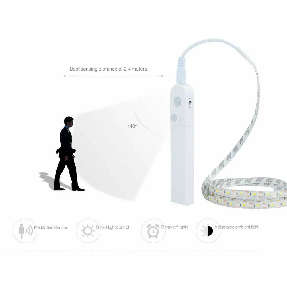 1/2/3 м светодиодный светильник полосы Водонепроницаемый движение-активированный движения PIR Сенсор светодиодный шкаф-кровать светильник 5V USB для комнаты Кухня лампа